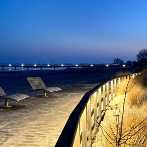 Zum Südstrand von Großenbrode sind es keine 100 Meter und die Seebrücke mit Restaurants, Bäcker sowie den Strandspielplatz für die kleinen Entdecker erreicht man in wenigen Minuten.
